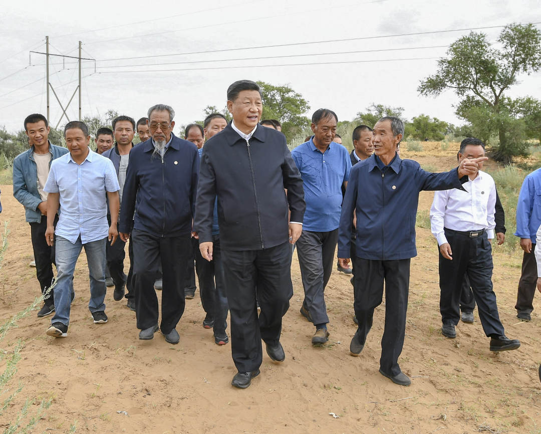 正在甘肃考察的习近平总书记,21日来到古浪县八步沙林场,察看林场风貌,听取武威市防沙治沙情况汇报和八步沙林场“六老汉”三代人治沙造林的感人事迹介绍,还拿起一把开沟犁,参与到治沙劳动中。习近平强调,我们要实现从富起来到强起来,就要把生态文明建设当作大事来抓,建设美丽中国。当前,生态文明观念日益深入人心,要继续发扬“六老汉”的当代愚公精神,再接再厉,再立新功,久久为功,让绿色的长城坚不可摧。