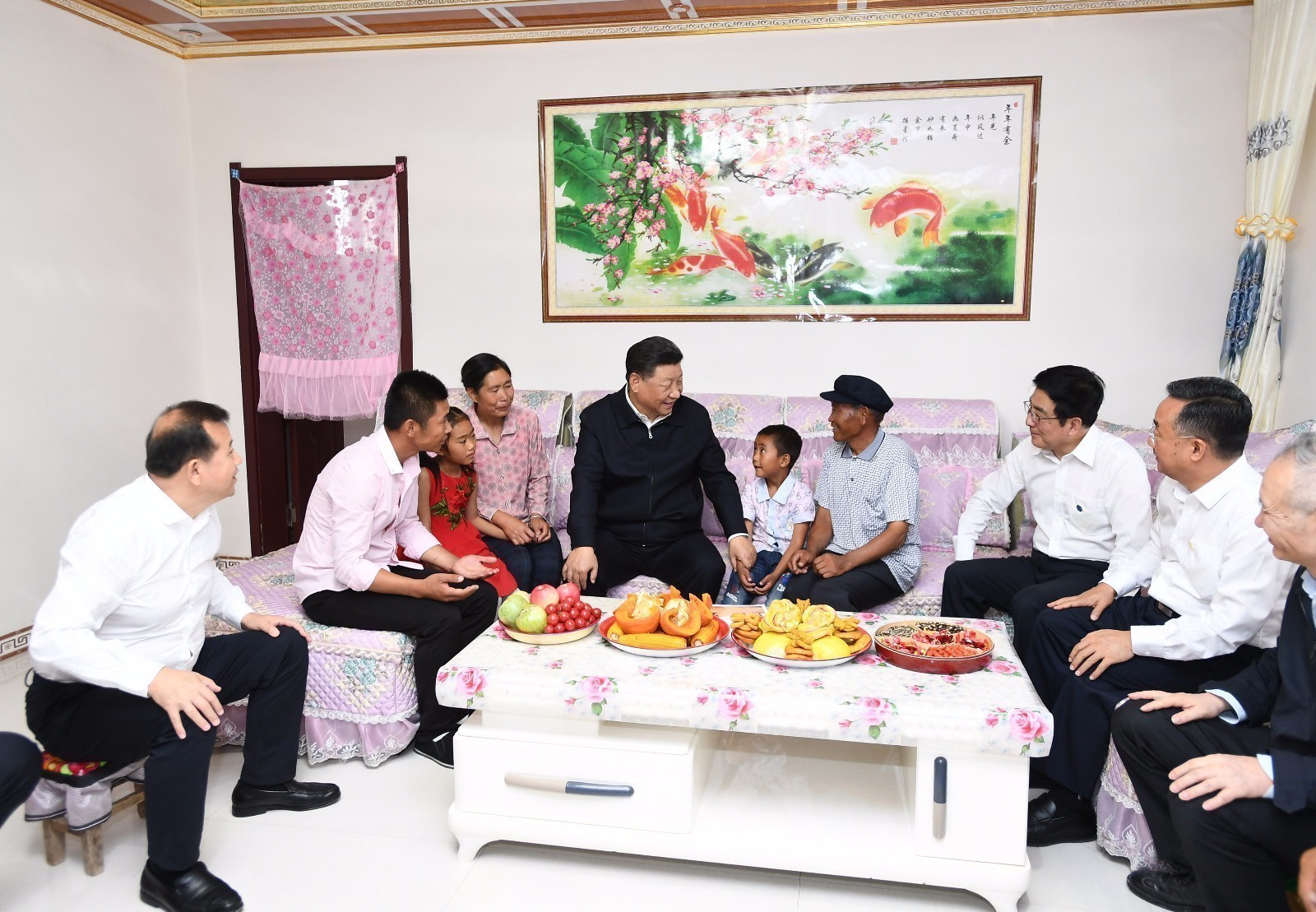富民新村地处甘肃省古浪县黄花滩生态移民区,习近平总书记21日上午来到这里,看望从山区生态移民易地扶贫搬迁的乡亲们。他走进村民李应川家,小院洁净、住房敞亮、厨卫设施齐全。在客厅坐下来,李老汉拿出一张搬迁前的老照片给总书记看,曾经居住的土坯房同窗明几净的新居有天壤之别。习近平对这里群众生产生活条件发生的巨大变化感到十分欣慰,李老汉连连感叹现在日子太幸福了。习近平强调,你们高兴我们也高兴,共产党就是为人民服务的,就是为老百姓办事的,让老百姓生活更幸福就是共产党的事业。