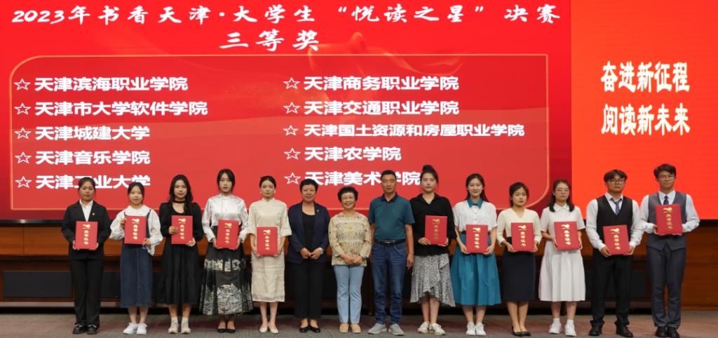 9月27日,由天津市全民阅读活动办公室,天津市高等学校图书情报工作委员会,天津市高等教育文献信息中心主办,天津中德应用技术大学承办的“奋进新征程,阅读新未来”2023书香天津·校园大学生“悦读之星”评选活动总决赛在天津中德应用技术大学举办,共有来自全市本科院校、军事院校、独立院校和高职高专51所学校的51位选手入围决赛。永利3044官网人文学院庄萌萌同学荣获大赛三等奖,经济管理学院魏星美、园艺园林学院李梓毓、食品科学与生物工程学院武子艳三位同学获得了天津市悦读之星网络人气奖。