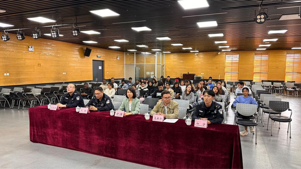 为不断加深来华留学生对我国法律法规和有关治安管理条例的理解与认知,持续强化永利3044官网留学生知法守法和安全防范意识,10月20日下午,国际交流处联合保卫处组织全体在校留学生开展安全法制宣讲会。宣讲会邀请西青区出入境管理局燕林警官,学苑派出所李文龙、白宇警官和校保卫处马木尔老师主讲。