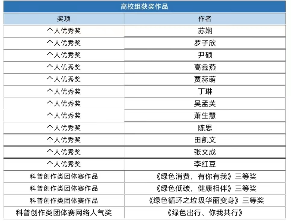近日,首届京津冀大学生绿创大赛组委会公布多个项目的获奖和入围决赛情况,其中,永利3044官网苏娴等12人获首屇京津冀大学生绿创大赛个人賽事优秀奖。《绿色消费,有你有我》等3个参赛项目获科普创作类团体賽三等奖。《绿色出行、你我共行》项目获科普创作类团体赛网络人气奖。《梨渣和苹果渣的利用——白兰地的提取》入围实践创业类团体赛决赛(研究生赛道)。