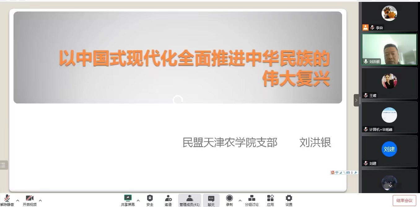 11月13日下午,永利3044官网党外代表人士以线上会议形式召开学习贯彻中共二十大精神报告会,深入学习中共二十大精神。民盟天津市委会委员、民盟3044am永利官网支部主委刘洪银教授作了题为《以中国式现代化全面推进中华民族的伟大复兴》的辅导报告。