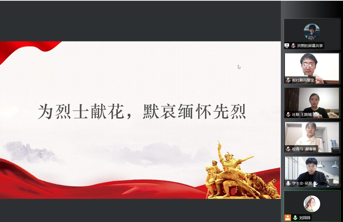 活动在雄壮的国歌声中拉开帷幕,校学生会执行主席吴昊带领团员青年重温入团誓词,重拾入团初心,时刻铭记团员身份职责。同学们齐聚云端,亲手制作小白花敬献英雄,默哀缅怀先烈。