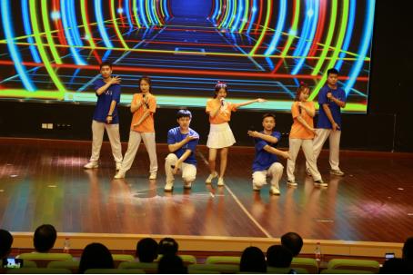 校大学生艺术团精彩的歌舞表演《我和2035有个约》,带领全场观众一同畅想2035年,勾勒出了祖国美好的明天,展现了3044am永利学子良好的精神风貌。