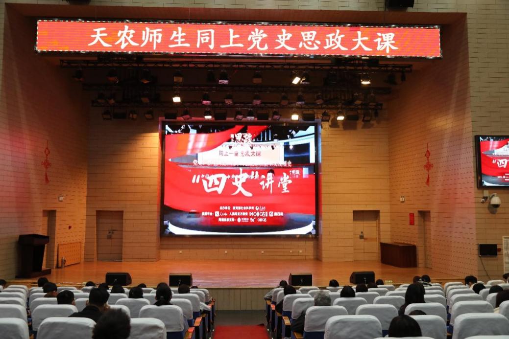 4月24日,永利3044官网组织学工干部、马克思主义学院教师及全体学生收看了由教育部社科司与人民网联合举办的“同上‘四史’思政大课”第一课——党史思政大课直播。此次思政大课由北京师范大学马克思主义学院赵朝峰教授、武汉大学马克思主义学院卢勇副教授、南京航天航空大学马克思主义学院何畏教授分别以《马克思主义与中国共产党的百年辉煌》、《中国共产党与中华民族的伟大复兴》、《中国共产党革命精神形成与传承的百年历程》为题,从不同的视角为我们清晰梳理了百年党史发展历程的脉络,为我们带来了一场丰富的精神盛宴。