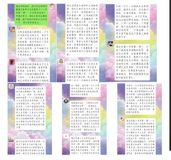 交流中,大家纷纷表示,这堂以疫情拉开序幕的公开课告诉人类,疫情是一场危机,更是一场大考,抗击疫情取得的成效,彰显了中国共产党领导和中国特色社会主义制度的显著优势;同时,也加深了对习近平生态文明思想的认识,深刻了解“自然是生命之母,人和自然是生命共同体,人类必须敬畏自然、尊重自然、顺应自然、保护自然”。大自然给予人类慷慨的馈赠,人类应该与大自然和谐相处,在利用自然资源的同时珍爱自然资源。