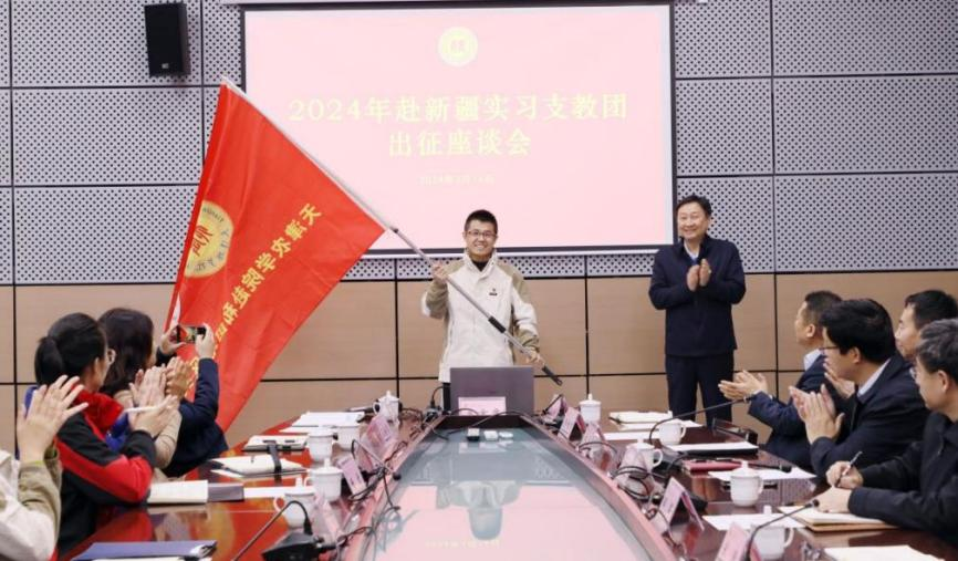 宋涛为实习支教团授旗,支教团领队、农学与资源环境学院党委副书记、副院长郑纪午代表支教团接旗。党委统战部部长舒桂良宣读成立临时党支部的决定,学工部部长王兆毅宣读成立临时团支部的决定。第三批援疆支教团教师代表、园艺园林学院辅导员王凯从衣、食、住、行等方面注意事项作支教工作经验分享。