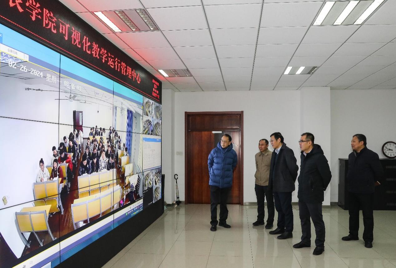 2月26日是新学期开学第一天,校党委书记王延文,校党委常委、副校长张民带队深入各教学楼宇,检查开学首日教学运行情况,现场指导新学期教学工作。