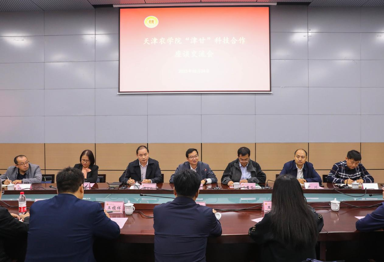 10月24日上午,“津甘”科技合作座谈会在永利3044官网举行,校党委常委、副校长(主持工作)金危危,校党委常委、副校长王繁珍与甘肃省科技厅二级巡视员梁云升一行进行交流研讨。甘肃省科技厅农村处处长王芳、天津市科技局社农处处长王祯祥参加座谈。