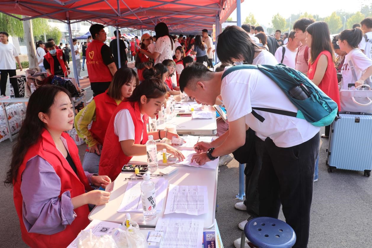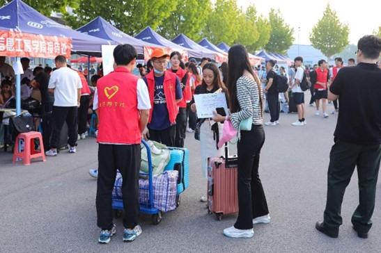 学校相关部门做好充分的准备工作,提前安排学生志愿者做向导,为新生们的到来保驾护航。迎新工作人员在校门口引导点及各个接待点准备就绪。随着新生的到来,迎新工作人员分工明确,在校门口引导新同学到对应学院接待点办理报到手续,经过身份核验、发放住宿卡、刷身份证人脸识别等程序帮助新同学快速、完整地完成报到流程。同时,各个引导点工作人员对新生提出的问题和疑惑进行耐心地解答。