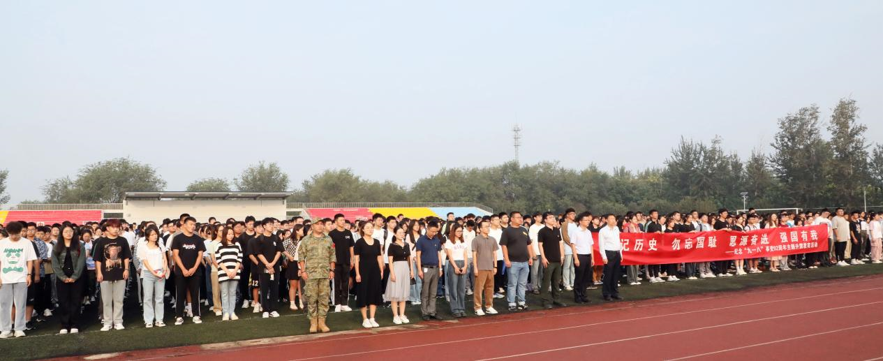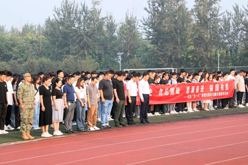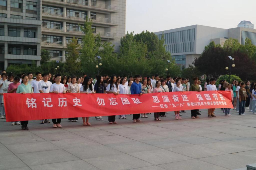 伴随着雄壮的国歌声,五星红旗冉冉升起。全体师生行注目礼,用嘹亮的歌声表达对先烈的缅怀和对祖国热爱。升旗仪式后,师生集体肃立,为“九一八”事变遇难同胞默哀1分钟。