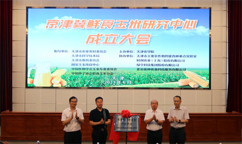 在与会人员的见证下,王志林、罗延安、王延文、金危危共同为京津冀鲜食玉米研究中心揭牌。
