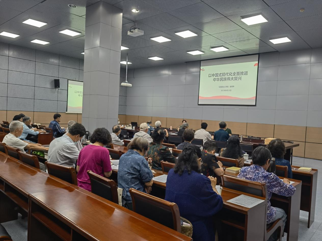 会议还邀请了学校马克思主义学院杨秀萍教授作了题为《中国式现代化全面推进中华民族伟大复兴》的专题辅导报告。