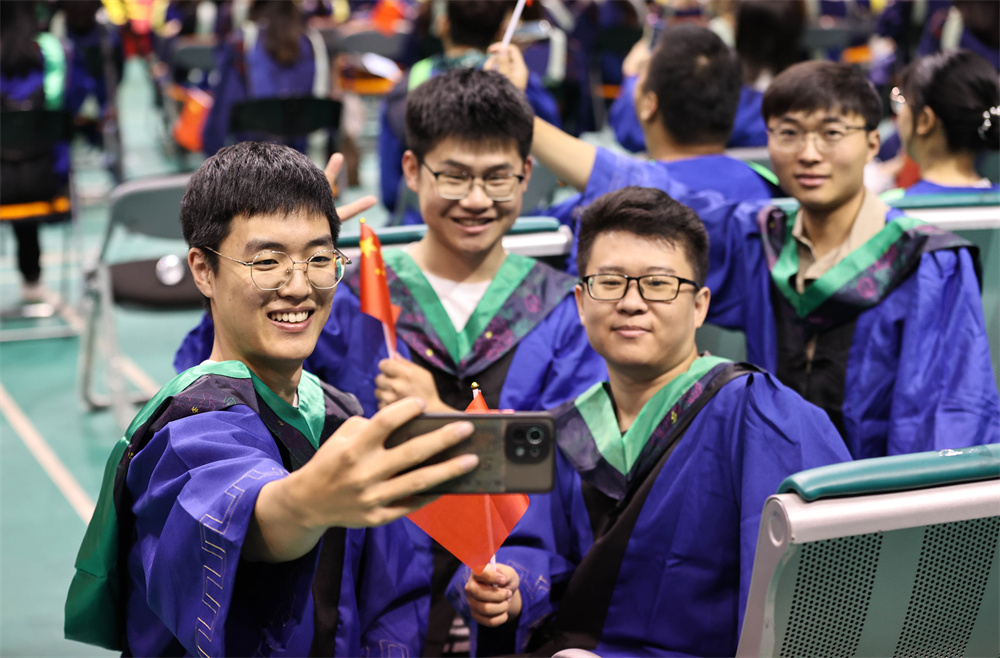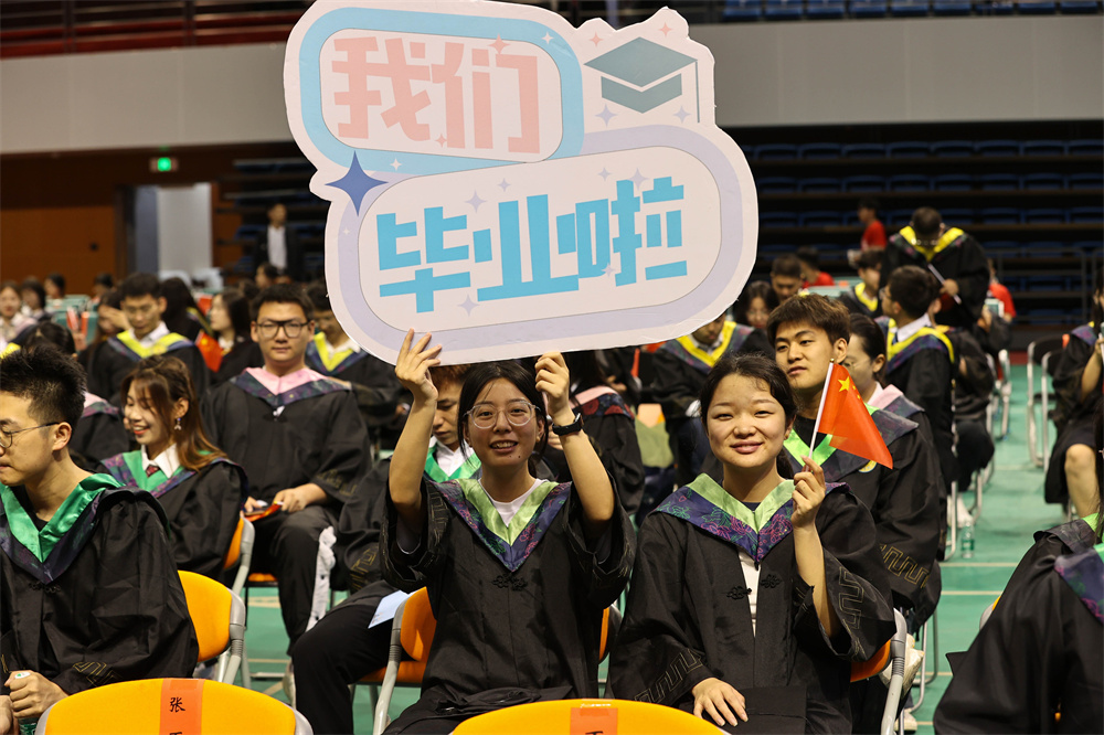 毕业典礼在全场合唱《歌唱祖国》中落下帷幕。