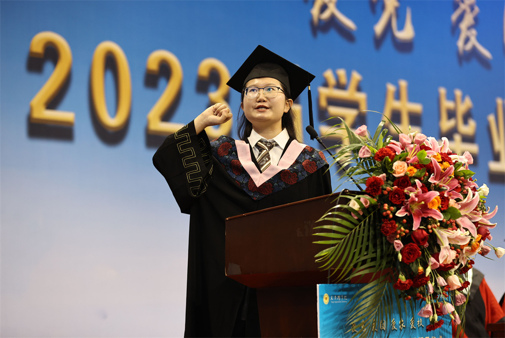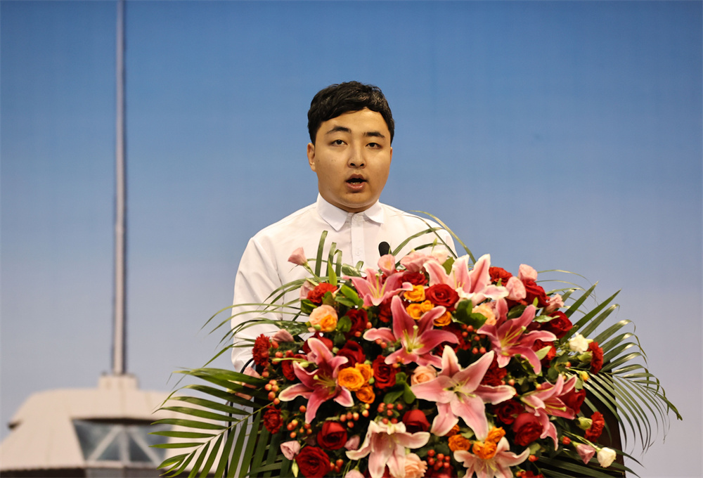 基础科学学院学生、校学生会执行主席崔一鸣代表在校生为毕业生们送上真挚的祝福。
