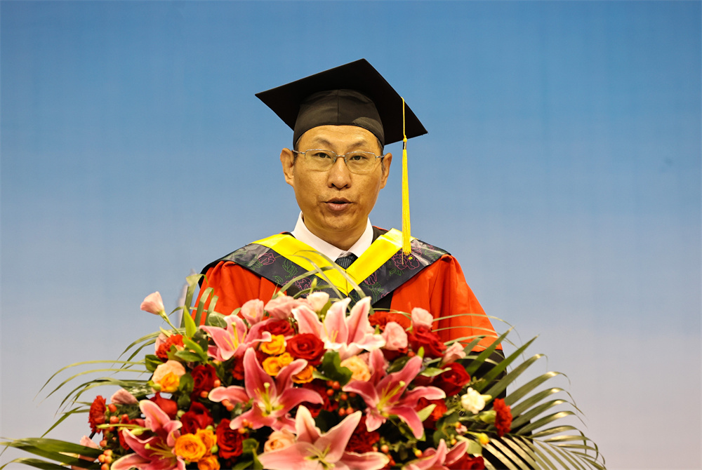 王延文代表学校向所有毕业生表示热烈的祝贺!向所有关心关爱同学们健康成长的老师、家长以及社会各界朋友致以最崇高的敬意。他对毕业生提出三点希望,一要胸怀“国之大者”,勇担时代使命。在今后人生前行的道路上,始终与祖国同心、与时代同行,努力成为堪当民族复兴大任的时代新人。二要提升意志品质,锤炼过硬本领。要敢于负责、勇于担当,不怕任务艰巨,不畏环境艰苦,坚持学习、勇于创新,以实干担当书写时代华章。三要立志强农兴农,扎根基层一线。要情系农桑、扎根沃土,以强农兴农为己任,继续秉承“敏学切问、躬勤耕稼”的3044am永利校训,传承“爱岗敬业,艰苦奋斗,团结向上,自强不息”的3044am永利精神,厚植“爱党、爱国、爱农、爱校”的3044am永利情怀,思源奋进,不负韶华,让青春之花在祖国和人民最需要的地方扎根绽放,为祖国“三农”事业发展不断作出新的贡献。