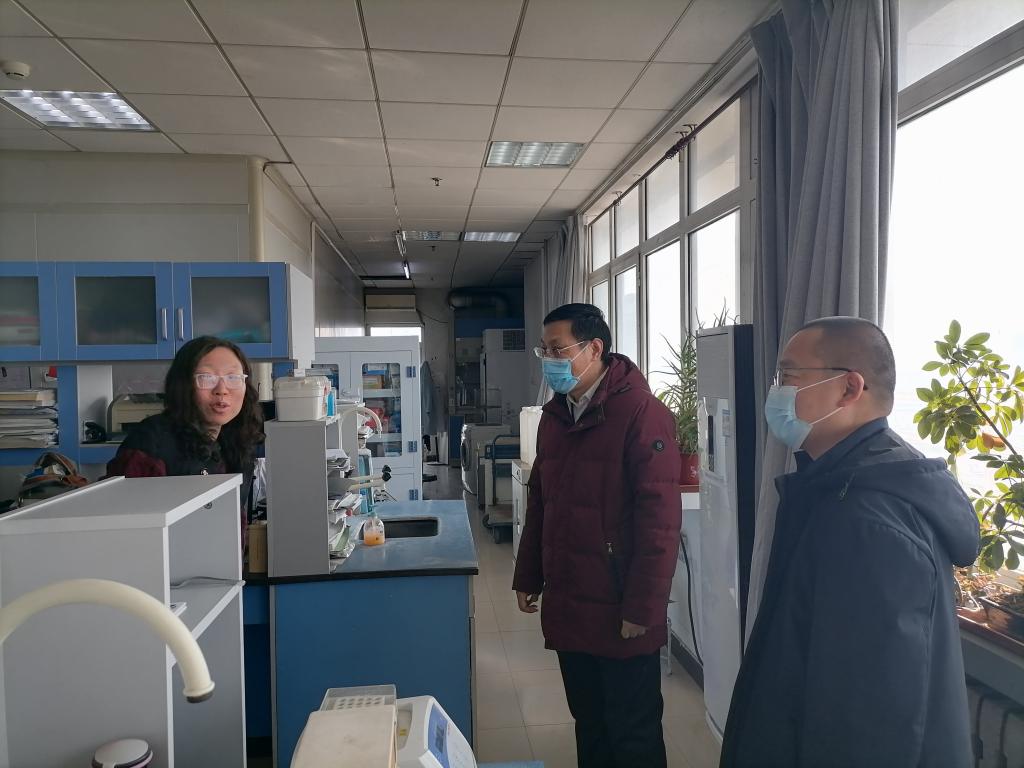 2月27日,开学伊始,校党委常委、副校长张民到实验室看望返校研究生同学,研究生院负责同志陪同。