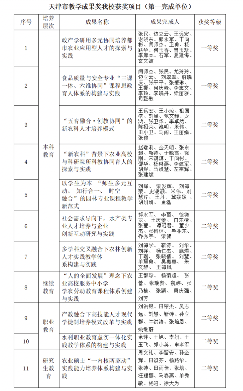 近日,天津市教育委员会公布了2022年天津市教学成果奖获奖名单,永利3044官网作为第一完成单位喜获11项天津市教学成果奖,其中,一等奖2项、二等奖9项,覆盖学校所有培养层次、所有教学单位。