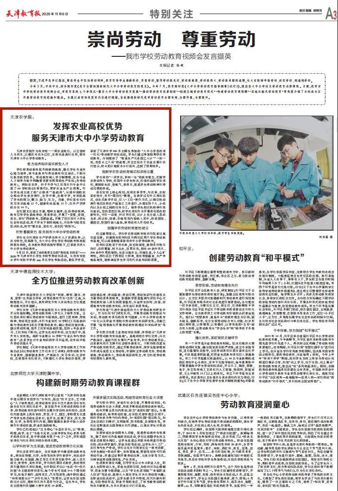 《天津教育报》报道永利3044官网发挥优势服务天津市大中小学劳动教育经验做法