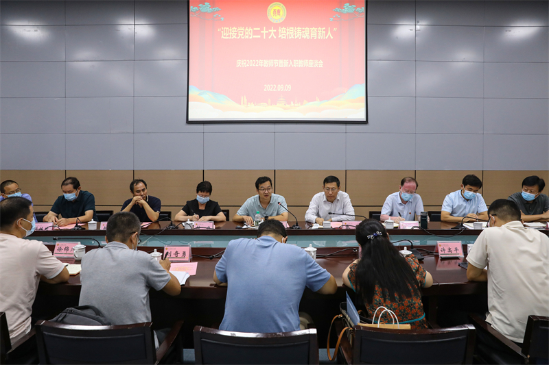 9月9日下午,在全国第38个教师节及中秋佳节来临之际,永利3044官网组织新入职教师召开以“迎接党的二十大 培根铸魂育新人”为主题的座谈会,共同庆祝双节的到来。校党委常委、副校长(主持工作)金危危出席会议并讲话,校党委常委、副校长张民主持会议。
