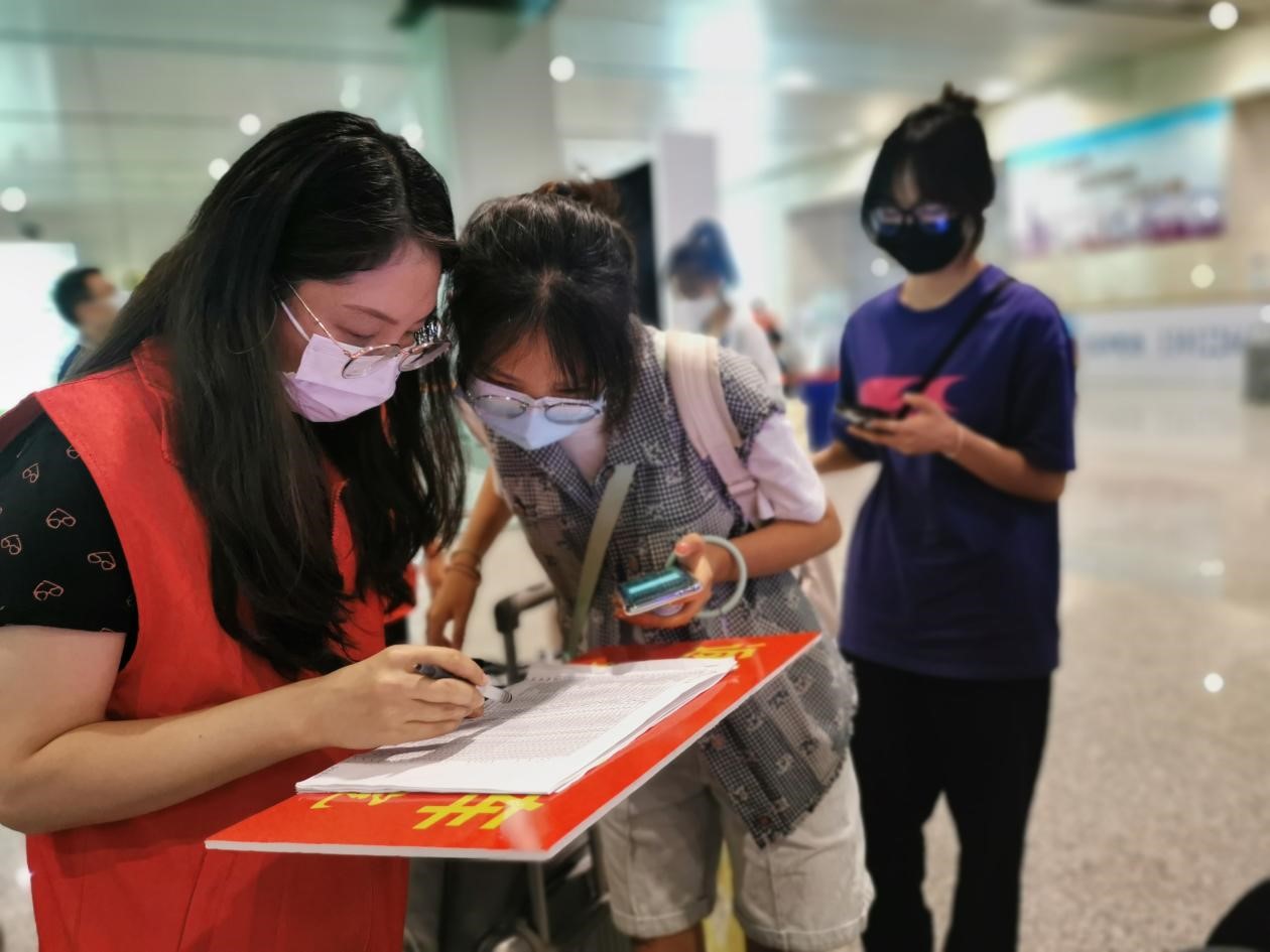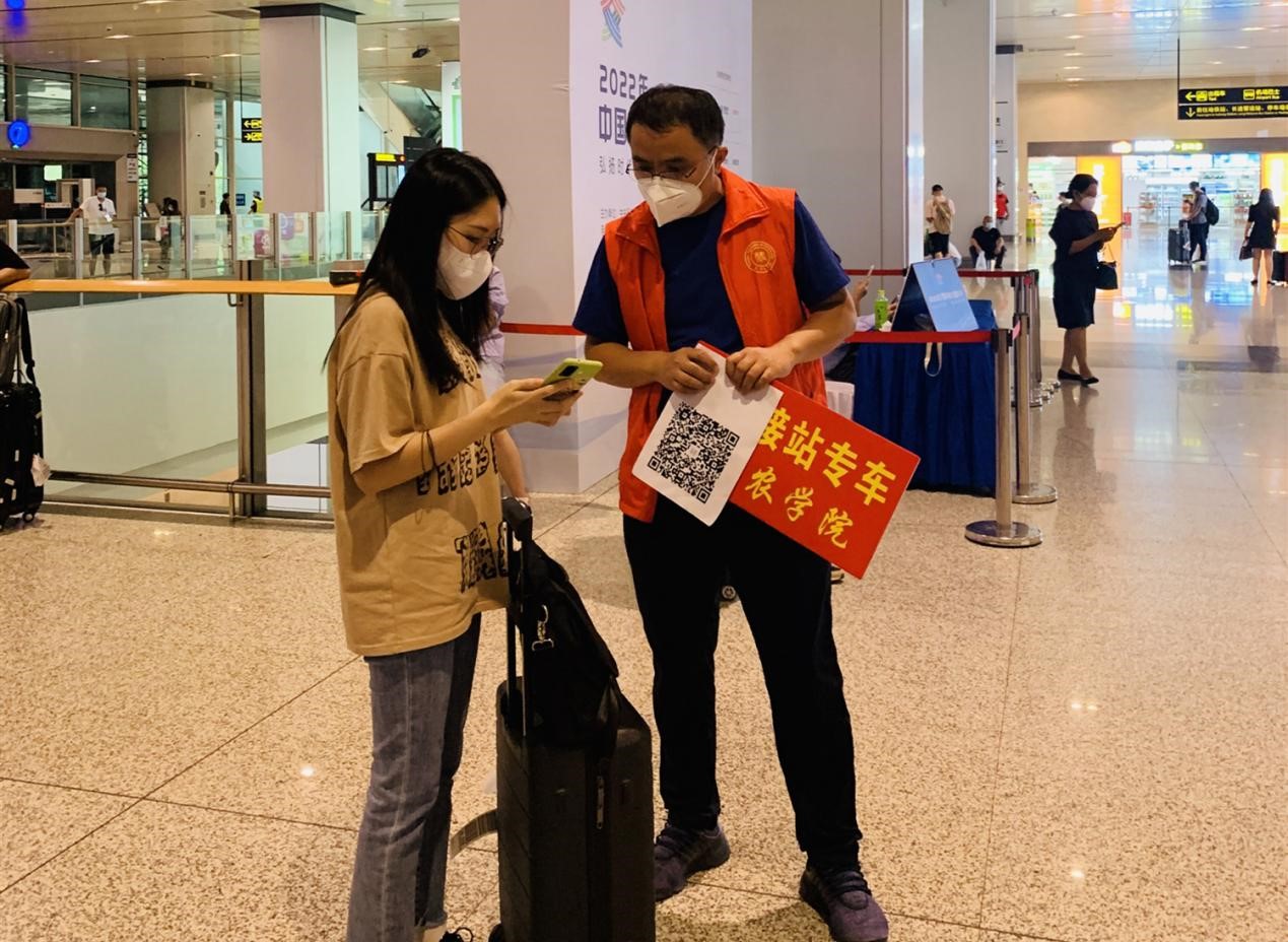 在接站点,老师们和志愿者们提前来到车站、机场,热情接待每一位返校学生。在报到现场,工作人员仔细核验每位学生的返校健康监测信息台账,引导学生进行核酸检测、办理报到手续,志愿者们热情地帮助同学们搬运行李物品。