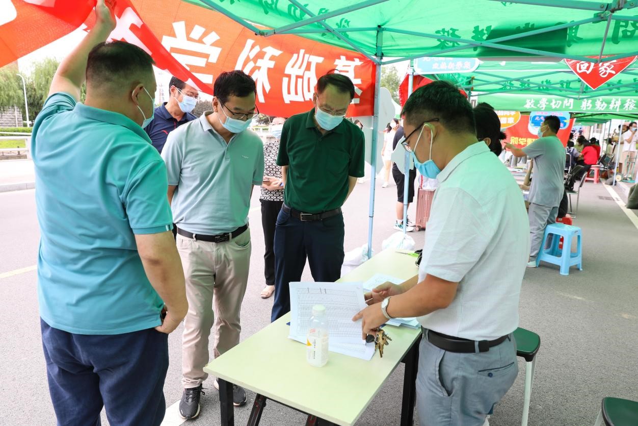 学校党委高度重视学生返校工作,校领导多次深入一线检查指导开学准备工作。返校当日,校党委书记王延文,校党委常委、副校长(主持工作)金危危,校党委副书记宋涛,校党委常委、副校长王繁珍到学生报到现场、超市、食堂等场所慰问坚守一线的工作人员和返校的学生,校领导详细查阅学生登记信息,仔细询问学生返校情况,查看核酸检测现场,并与返校学生亲切交流。在食堂和超市,认真查看物资储备和饭菜供应情况,叮嘱工作人员一定要服务好每一位学生,为学生营造安全健康的校园环境。