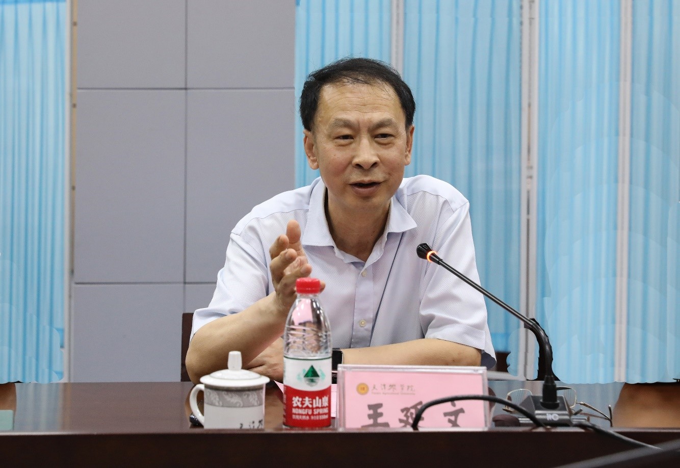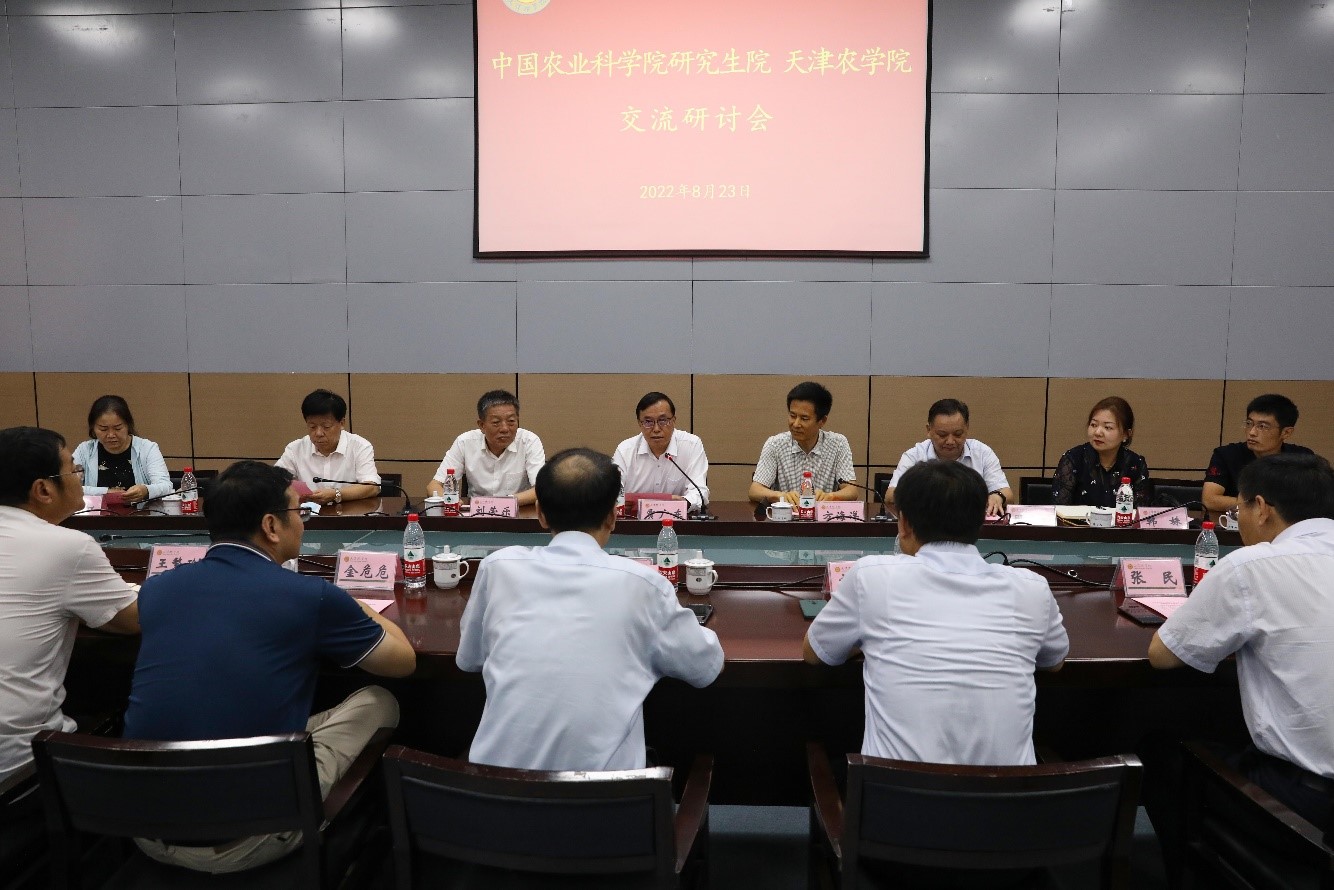 王延文首先对贾广东一行莅临表示热烈欢迎,对中国农业科学院研究生院长期以来对永利3044官网的支持表示衷心感谢,并对永利3044官网的事业发展以及在科教融合、服务乡村振兴和京津冀协同发展等方面的思路和举措进行了介绍。他希望以此次交流为契机,进一步推动双方在课题申报、人才培养、资源共享、学术交流等方面达成更多的合作意向,通过深化合作结出更多的果实。