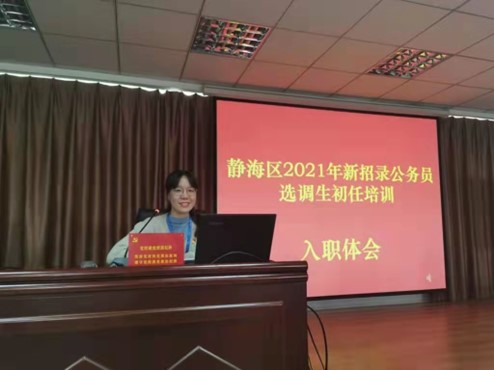 作为一名基层党员干部,她被分配至静海区子牙镇人民政府,现主要在政府办从事机关公文办理以及办公室事务性工作。她在实践中学习不同类型公文办理流程,学习如何做电话记录,如何协调处理传办文件过程中遇到的问题。从参与镇人代会、党代会的筹备、召开工作,到将疫情防控各项措施、核酸检测落实到基层一线,再到“创文创卫”工作的深入开展,她不断自我学习、自我磨练,学习本领,增长才干。疫情期间,她一直参与在乡镇持续开展推进疫苗接种工作和数次全员核酸筛查任务中。从凌晨四点钟的电话流调,再到深夜十一点钟在岗进行核酸采集任务,高强度、高负荷的工作并没有使她丝毫懈怠,她始终认真履行基层责任,特别是核酸大筛查期间,面对工作形势状况百出,层出不穷,她仍保持对流调工作的严谨,合理分配并准确发放筛查物资,灵活应变筛查工作中遇到的突发状况,及时传达并协调处理接到的上级公文、群众电话等,工作稳步有序开展。