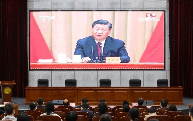 党委组织部、党委宣传部、党委学生工作部、党委研究生工作部、党委教师工作部、马克思主义学院等部门主要负责人与青年朋友们一同观看直播。(校团委供稿;文字:校团委;摄影:陈卫东 王永利;编辑:黄宝霞)