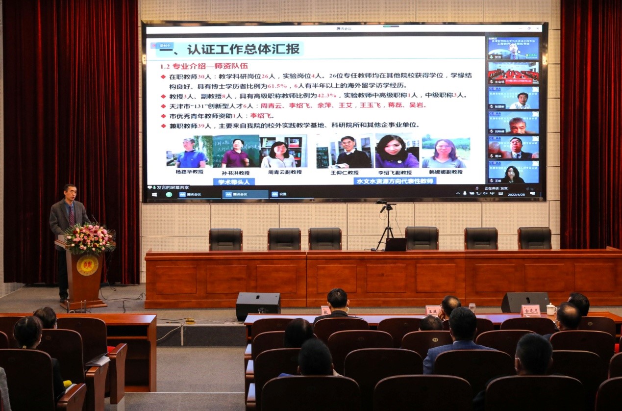 4月28日—29日,中国工程教育认证协会工程教育认证专家组对永利3044官网水文与水资源工程专业进行了线上集中考查。专家组组长梅亚东教授,专家组成员王瑞骏教授、张建新教授、徐辉教授、刘咏峰教授,专家组秘书周来副教授、王琼高工,线上考查督导李睿璞老师、杨谨蔚老师以及永利3044官网党委书记王延文,校党委常委、副校长(主持工作)金危危,校党委常委、副校长张民出席专家见面会和意见反馈会。