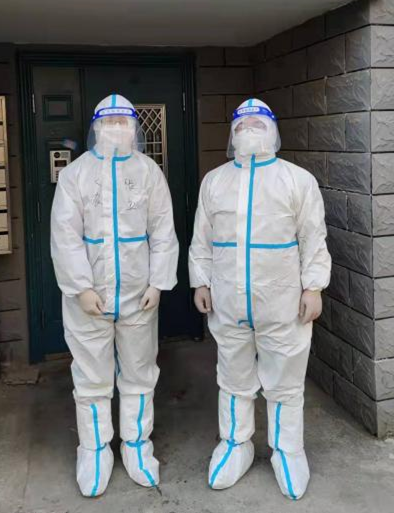 刘峄老师接到了社区干部的电话,转天一早就去街道协助医护人员为居民进行核酸检测。刘峄老师在核酸大筛中被分配了维持秩序的任务,从凌晨5点到岗就开始了忙碌的工作,因为穿着防护服,为了保证工作的持续进行,她坚持没有喝水,工作一直进行到深夜11点半才结束。刘峄老师认真清点人数,确保10人一组,为核酸检测顺利有序进行提供了保障。刘峄老师还继续投身到社会工作中去,完成社区交办的其他工作。
