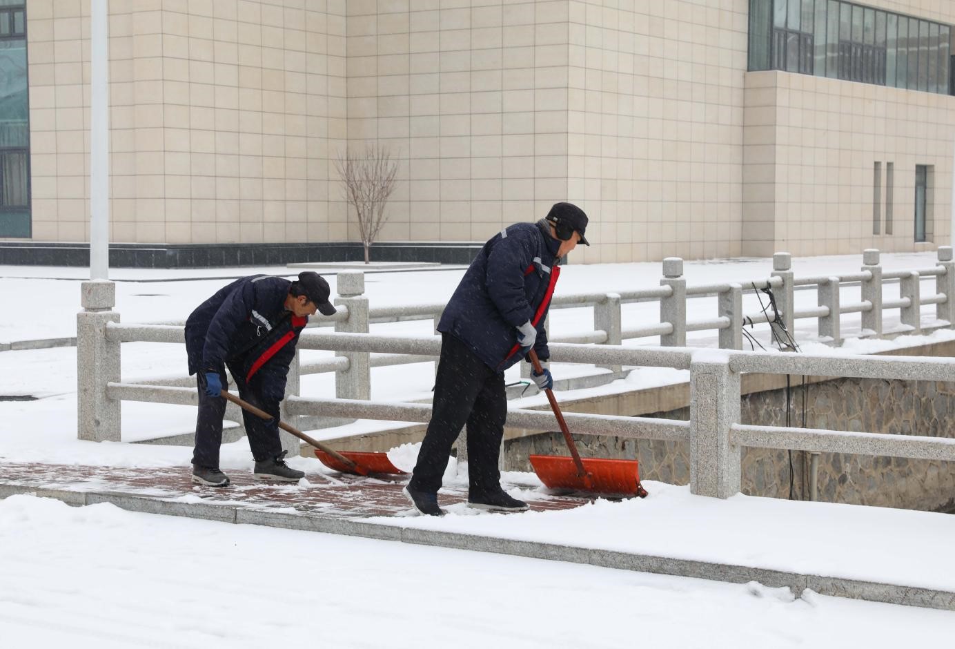 居住在疫情管控区的教师党员在社区清扫积雪,畅通社区道路