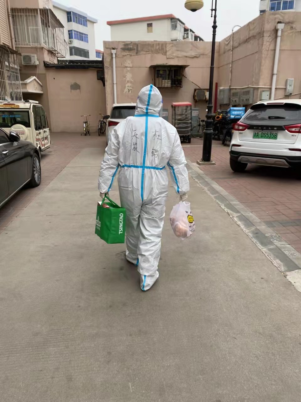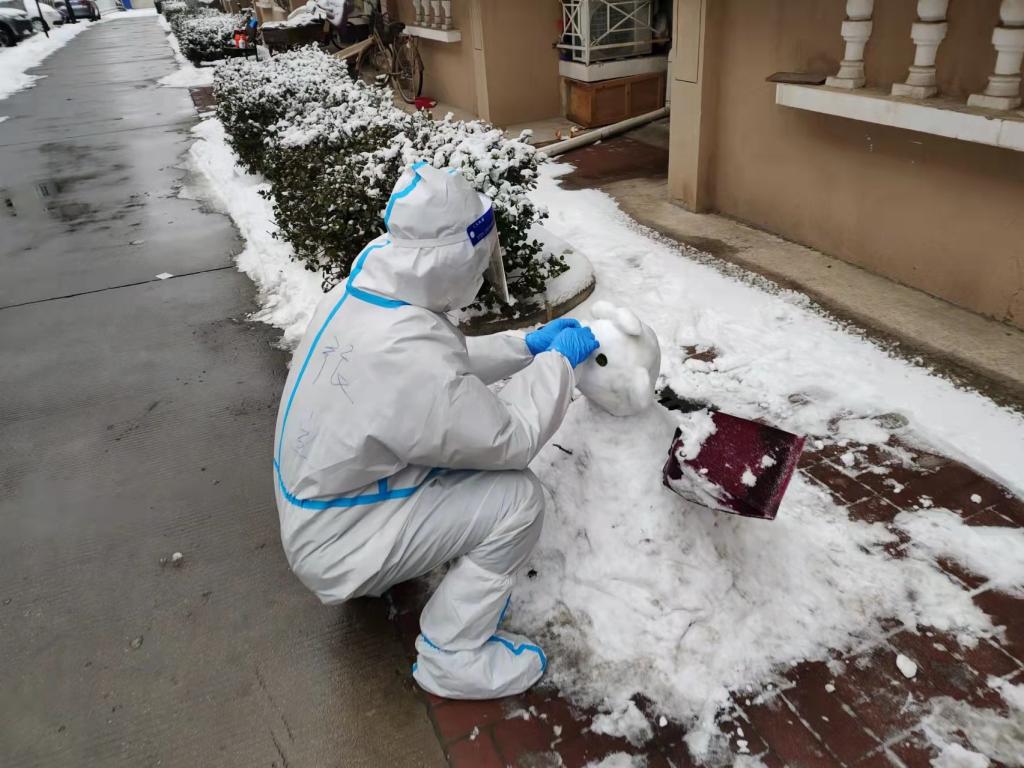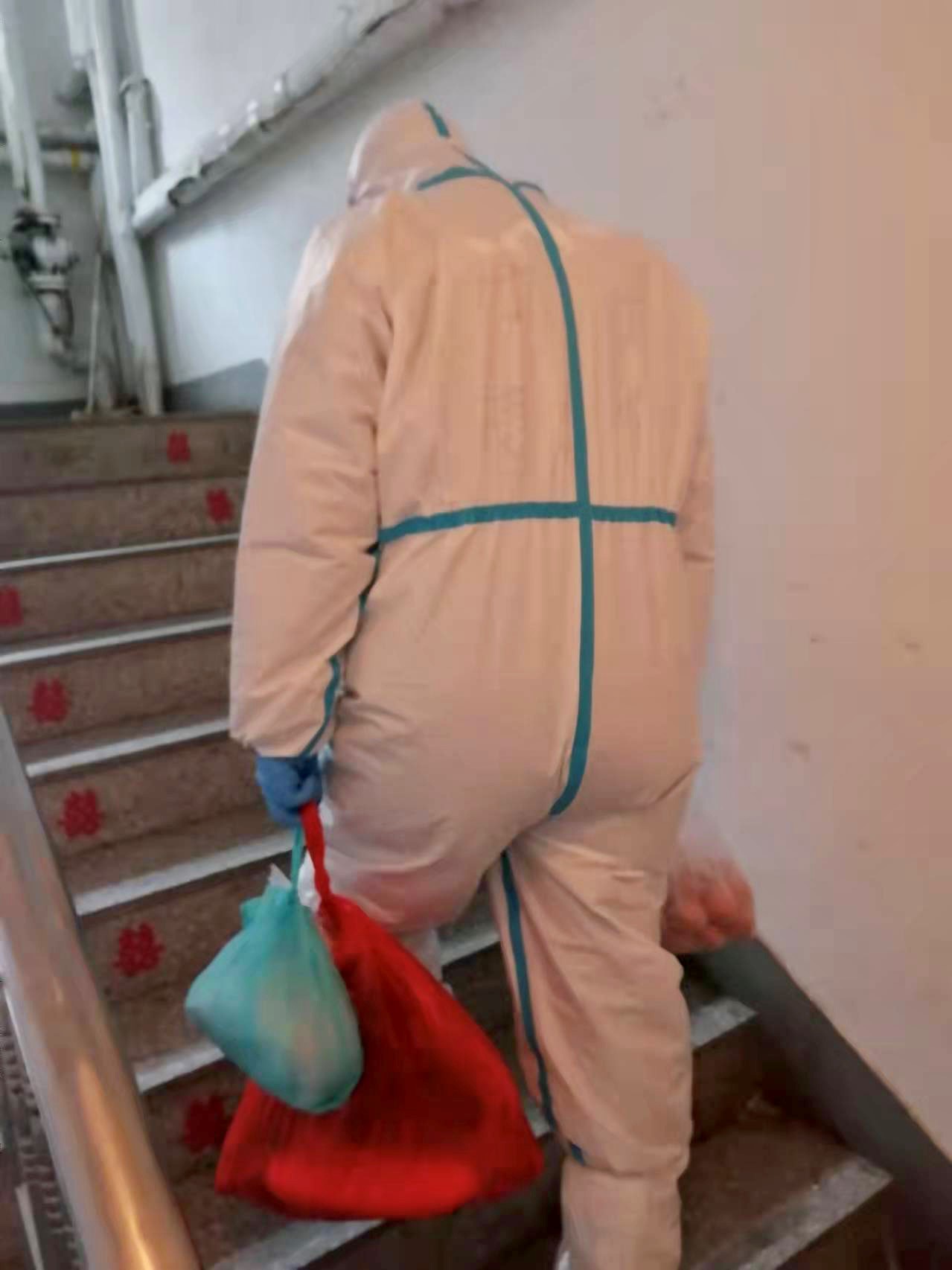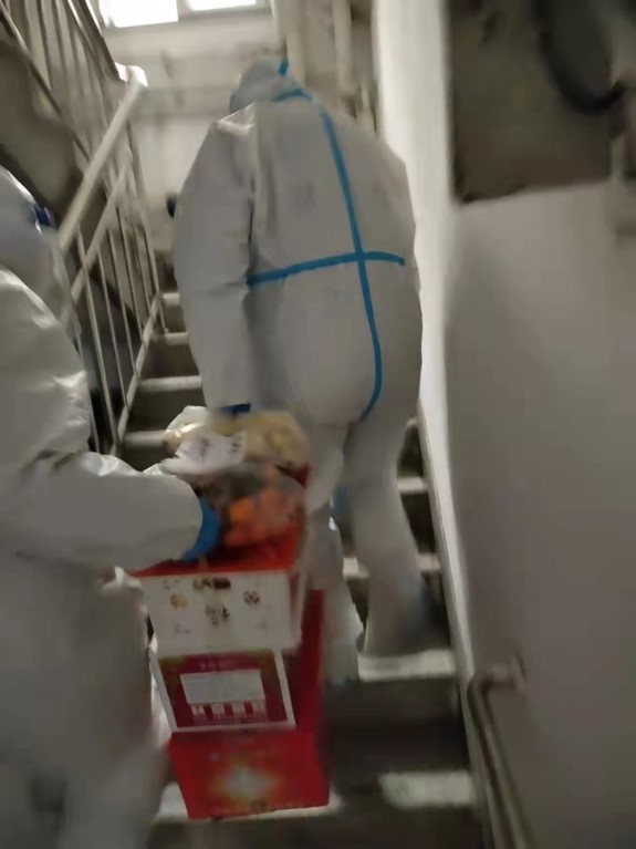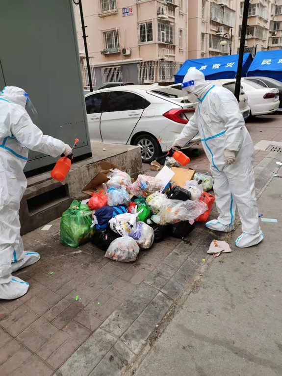 责任区楼栋单元内的物资配送和生活垃圾清运是工作队每日的重要任务,也是最易出现接触传播风险的环节。全体队员时刻严把封控区内工作标准,严格做到物资“非接触式”配送和垃圾清运“前、中、后”全程跟踪消杀,以最严尺度、最高标准最大限度压缩传播风险存在空间。