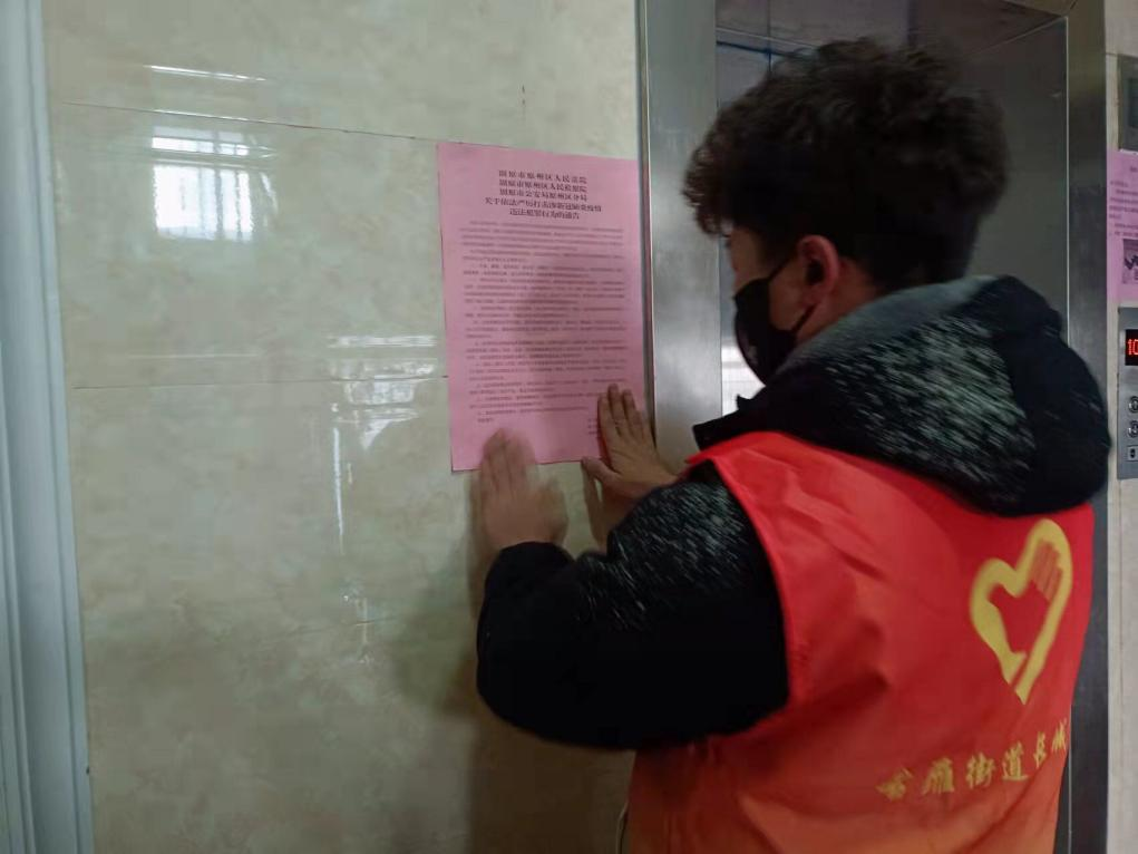 经过社区安排,石健涛同学主要负责丁香苑的疫情防控工作。包括将市级、区级以及社区的重要文件在小区单元楼进行张贴,每日检查小区住户防疫行程卡,对低风险地区外来人员进行详细登记等。然而工作期间也会遇到一些住户的不理解,但他总是面带微笑,用自己的耐心和热情化解他们的焦虑和不耐烦。“您好,出示一下您的防疫行程码”“您好,请在这登记一下”成了他最新的“口头禅”。面对冬日凛冽的寒风,他一站就是四五个钟头,从不喊苦喊累,他用自己的辛勤和汗水守护着小区群众的安全,用自己的实际行动诠释着当代青年大学生该有的担当。
