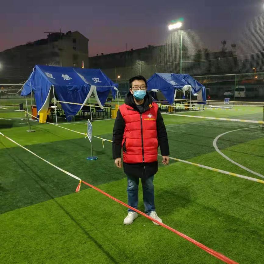 作为学校推荐、市教委选派参加实践锻炼的思政课教师,罗忠荣老师自去年下半年至今一直在红桥区的千禧园社区做实践锻炼。1月9日早上7点,罗老师接到核酸检测大筛查通知,立刻赶到千禧园社区居委会和社工一起筹备大筛查,上午招募志愿者,下午搭建帐篷,准备桌椅、警戒线、警戒桩、电脑、供电设备等核酸检测保障物质,一直工作到夜里11点多钟。1月10日早上6点,罗老师参与组织小区居民做核酸检测。罗忠荣老师说:“千禧园社区是红桥最大居民社区之一,281栋楼门户口居民8000多人,现场工作非常繁重。我和社区居委会工作人员、社工和志愿者一起组织社区居民有序做核酸检测。一天下来,虽然很累,但是获得了圆满完成工作的成就感。”当天,罗老师只在早上匆匆吃了几口饭,紧张忙碌地工作了一天,体力明显透支,累得都快站不住了,但是他仍然坚守在岗,和大家一起完成了工作。在随后的几天,罗老师又参与组织了社区第二轮核酸筛查工作。