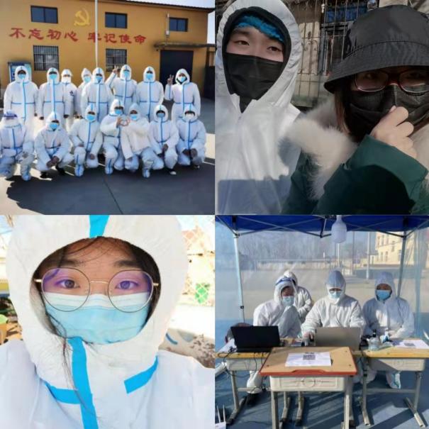 天还未亮李琪同学便已投入工作,夜深了却还在第一线为社区居民服务,检验居民信息,手写各类资料,有核酸检测的居民就不曾停歇。“穿上防护服的那一刻,责任很重,负担很重,作为大学生,虽然还没有步入工作岗位,但也要奉献自己的一份微小的力量。”当被问到为什么要参与抗疫志愿者活动时,费标欣同学如是说道。“大爷,做完核酸麻烦您及时带好口罩,做好防护!”“小朋友别怕,很快就好啦!”当2019级佟可心同学在为大到耄耋之年,小到六个月的小朋友安排进行核酸检测时,皓月已然当空。李亚宁同学在参加社区志愿者工作后说道:“感受到了医护人员的不容易,也感受到大家伙儿的热情与配合,对我们的工作表示了十足的支持与理解。”无声的战场上,每个人都是默默奉献的英雄。