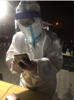 1月12日中午12点,天津市河西区启动全域第二轮核酸检测筛查工作,这一次,翟老师听说由居民扫码改为工作人员录入信息,需要使用安卓手机才能录入,主动报名进入采样录入组,上午10点来到社区接受了采样录入系统培训,掌握了采样录入系统的软件操作。接下来,从下午14:00开始穿上防护服成为第一梯队组成员进行采样录入工作,一直工作到零点结束,圆满完成信息采集录入工作。她说:“作为一名党员干部,能够在社区防控疫情工作中尽一己绵薄之力而自豪。在党中央的坚强领导下,我们大家齐心协力,众志成城,定能早日使疫情退散,天津加油!”