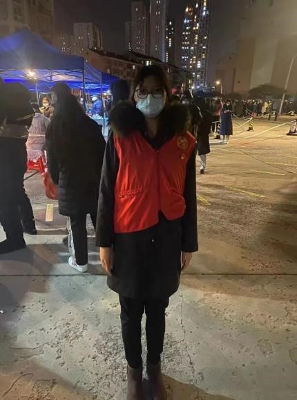 疫情到来之际,校四期青马学员张晓萌参加了天津市南开区长宁里社区疫情防控志愿服务活动,负责帮助老人们扫描二维码登记个人信息、人流疏散等工作。“在这个特殊的日子里,大家排了几个小时的队也没有一句抱怨,甚至有好心人给送来了手套和暖宝宝。中国自始至终都是个不服输的民族,我们永远相信人定胜天。寒风刺骨中,大家的手脚冻到麻木,但一颗颗火热的心会聚在一起,我们终会战胜疫情,迎来光明与希望。”