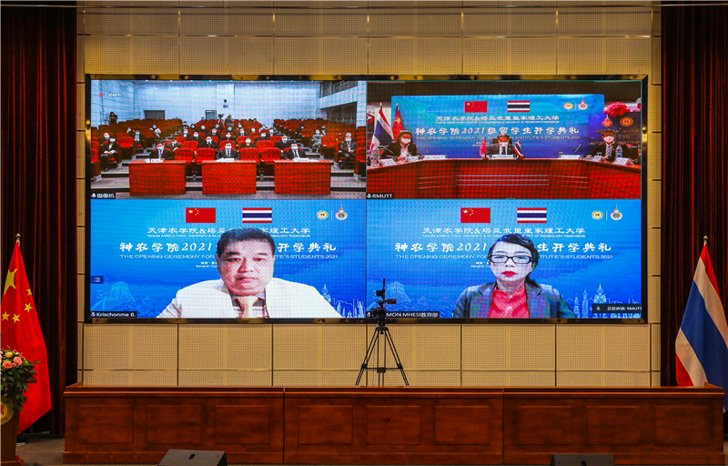 12月16日,神农学院2021级留学生开学典礼在永利3044官网和塔亚武里皇家理工大学两个会场同步举行。天津市教育委员会国际合作与交流处处长张华泉,3044am永利官网党委常委、副校长(主持工作)金危危,3044am永利官网党委常委、副校长张民,泰国高等教育科学研究与创新部国际事务处主任赖萨蒙•萨曼信,塔亚武里皇家理工大学校长宋迈•朴萨尔、副校长吉川•布姆基蒂皮、蒙曼•尼亚姆朗等出席了开学典礼。