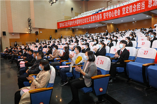 大会通过代表向全校同学发出倡议,引导全体同学深入学习宣传贯彻习近平总书记在庆祝中国共产党成立100周年大会上的重要讲话精神,牢记习近平总书记对广大青年的殷切嘱托,以实现中华民族伟大复兴为己任,不断增强爱党爱国爱农爱校情怀,坚守为他人着想的自觉,主动参与校园建设,融入校园发展,做光盘行动的示范者、引领者,在宿舍文化建设中做好先行者,在文明校园创建中站好示范岗,共同营造健康、平安、书香、美丽、和谐的文明校园。