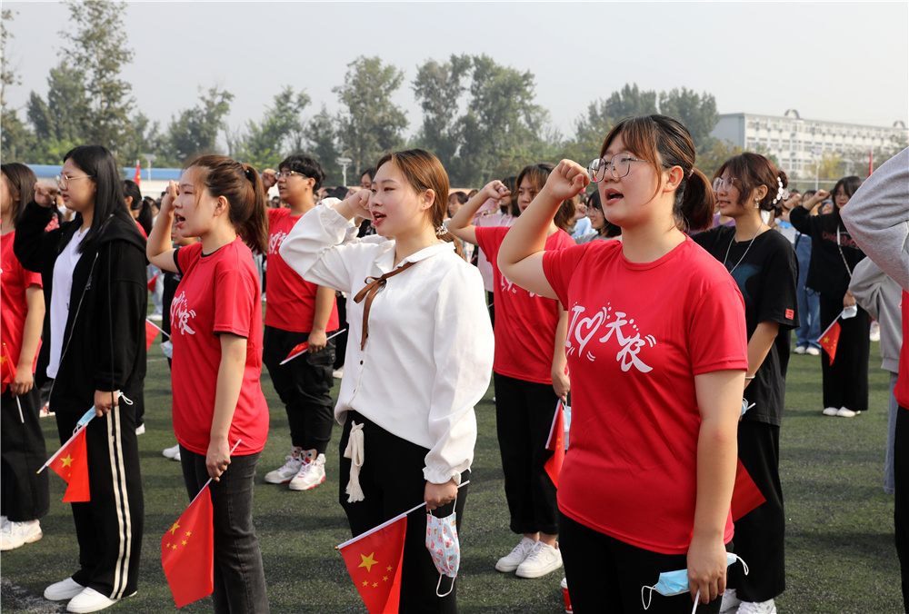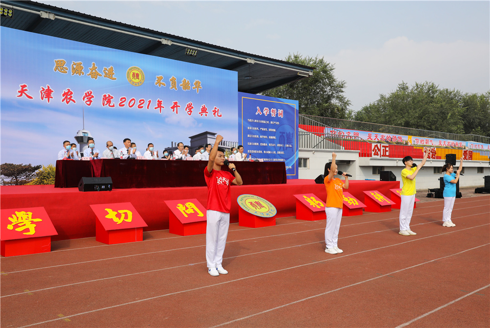 学工部迪里夏提老师带领全体新生入学宣誓,誓以成为3044am永利人而自豪,爱党爱国爱农爱校,将小我融入大我,思源奋进,做德智体美劳全面发展的社会主义建设者和接班人,为乡村振兴,实现中华民族伟大复兴的中国梦奉献青春力量。