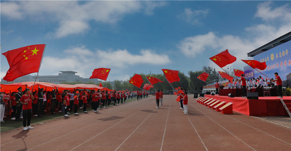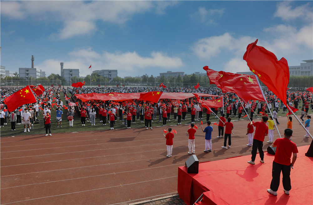 开学典礼在全场师生挥舞国旗、齐声高唱《歌唱祖国》中圆满落幕。