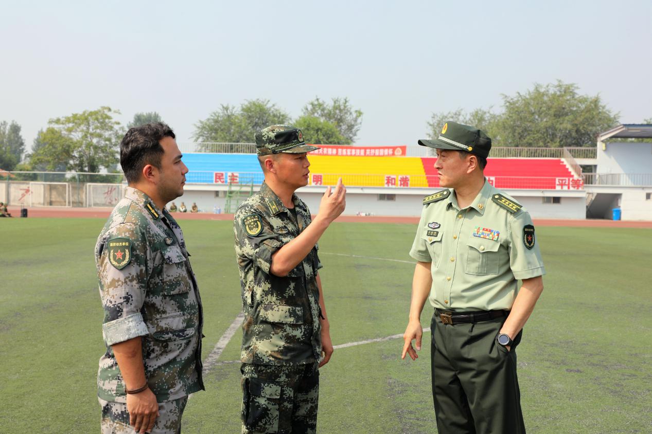 辛维刚大校一行直接深入军训一线场地,详细询问学校及承训部队军训场地安排、训练内容、后勤保障等情况。随后,辛维刚向参训学生详细了解了训练情况,并现场观看了训练成果展示。检查中,辛维刚对全体承训官兵严格遵守军训规定,严密组织、科学施训取得的良好军训效果表示满意。他叮嘱学校及承训部队要通过驻校军训工作加强军地双方合作交流,以部队良好的纪律作风影响和带动参训学生,确保安全圆满完成本次军训任务。