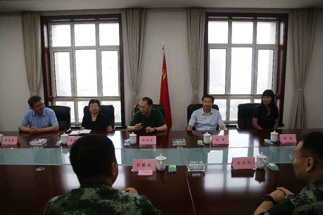7月28日,在第94个“八一”建军节来临之际,校党委副书记、校长王延文,校党委副书记宋涛一行前往武警天津市总队开展慰问座谈活动并送去节日慰问品,共叙军民鱼水情。