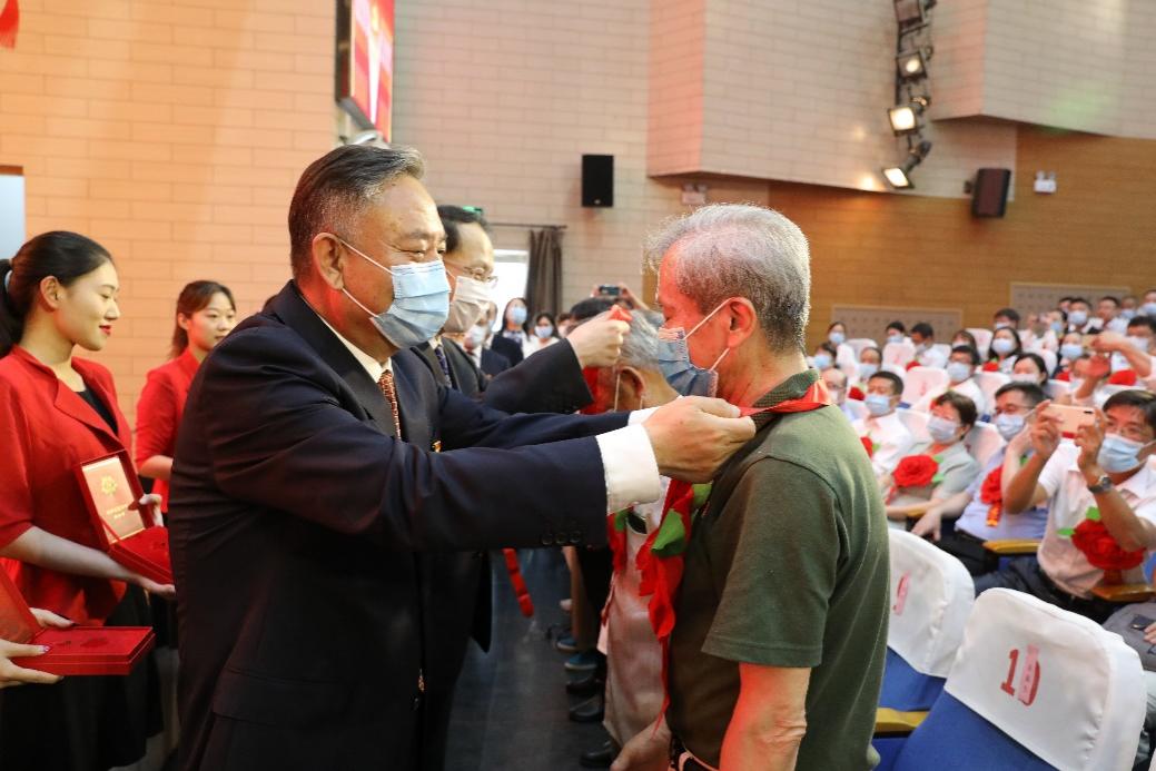 在中国共产党成立100周年之际,校领导向老党员颁发了“光荣在党50年”纪念章,向他们表达崇高的敬意和节日的问候。五十年党龄,五十载光荣。颁发“光荣在党50年”纪念章是中国共产党成立100周年庆祝活动的重要组成部分。6月29日,在永利3044官网召开庆祝中国共产党成立100周年暨“两优一先”表彰大会上,校党委书记孙守钧,校党委副书记、校长王延文等全体校领导向党龄达到50周年的党员代表颁发“光荣在党50年”纪念章。