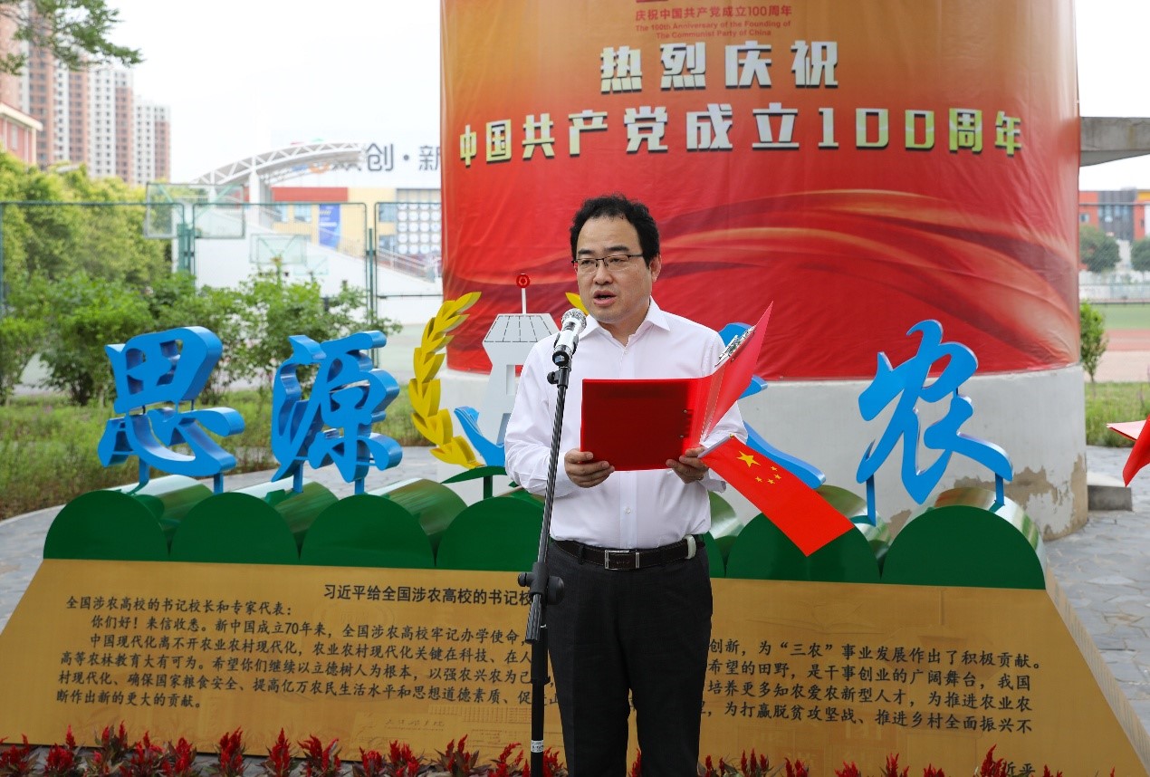 孙守钧说到,作为永利3044官网庆祝建党百年活动的一个重要环节,在这一伟大时刻,开展“庆祝中国共产党成立100周年思源奋进”文化活动,举办“思源3044am永利”文化景观揭幕仪式,同庆党的百年华诞,共谱3044am永利发展新篇,正逢其时,意义深远。建校45年以来,3044am永利官网始终坚持社会主义办学方向,始终坚持“三农”立身,始终坚持“政产学研用”深度融合,始终坚持把论文写在大地上的办学思想,主动服务国家和社会需求,形成了紧贴区域经济社会发展,根植于农业农村生产生活实际的鲜明办学特色,培养和造就了一大批懂农业、爱农村、爱农民的“三农”工作队伍和“知农爱农”新型人才。从“大干三年,吃鱼不难”,到“在戈壁滩上种蘑菇”,再到“数百名教师和科研人员参与到援疆、援藏、援青、援甘、援冀以及我市农业农村工作中”,3044am永利人以舍我其谁的担当精神和无私无畏的奉献精神,在服务“三农”的道路上驰而不息地追逐着自己的梦想。