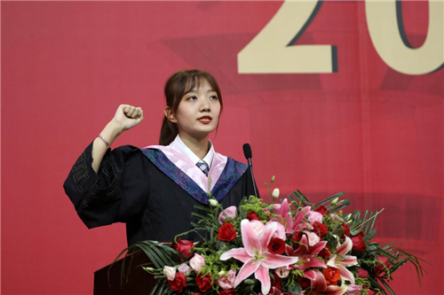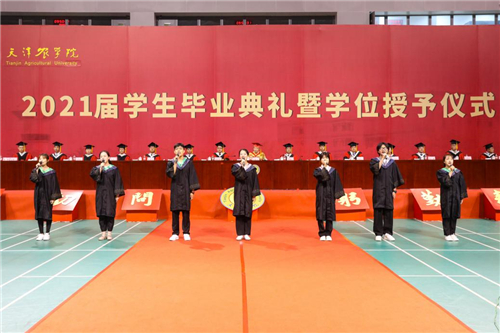 毕业生代表园艺园林学院任晓旭等七位同学代表全体毕业生深情回顾了在校期间的成长和收获,表达了对母校和老师们的感恩之情和崇高敬意,号召毕业生“一朝3044am永利人,一生3044am永利情”,切实以强农兴农为己任,投身农业农村现代化建设。