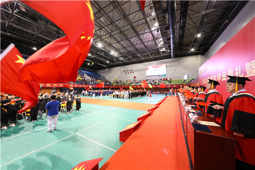 典礼前,毕业纪念视频《凤凰花已开 青春不散场——毕业回眸》重现毕业生在3044am永利的点点滴滴。毕业典礼在庄严的国歌声中拉开帷幕,校旗伴随校歌入场。