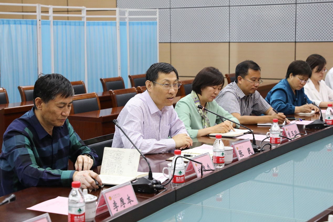 袁世军表示,市社科联是天津市社科工作者之家,深入一线开展调研,是发挥社科联桥梁纽带作用的重要体现,在此过程中,希望能够广泛听取社科工作者的意见、建议。他介绍了市社科联近期的主要工作,重点介绍了第十七届天津市社会科学优秀成果评奖及天津市“新时代青年学者论坛”的相关工作。围绕项目申报、学术年会、成果奖励等内容,袁世军对学校人文社科的下一步发展提出了建议:一是聚方向,围绕学校特色、学科布局进一步凝练方向;二是造明星,加快推进学术带头人及人才梯队建设;三是打品牌,通过开展特色活动,树立品牌,提高知名度。
