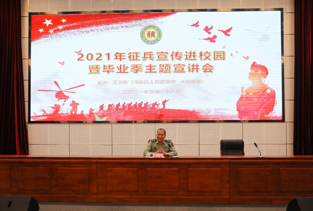 5月28日上午,永利3044官网在图书馆四楼报告厅召开2021年征兵宣传进高校暨毕业季主题宣讲会,邀请河东区人民武装部政委王卫东大校担任主讲。会前,校党委副书记、校长王延文会见了王卫东一行,并就永利3044官网武装工作进行了交流。宣讲会由校武装部部长高艳主持。